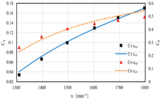 Variation in propeller CT and CP with rotational speed at zero inflow angle.
