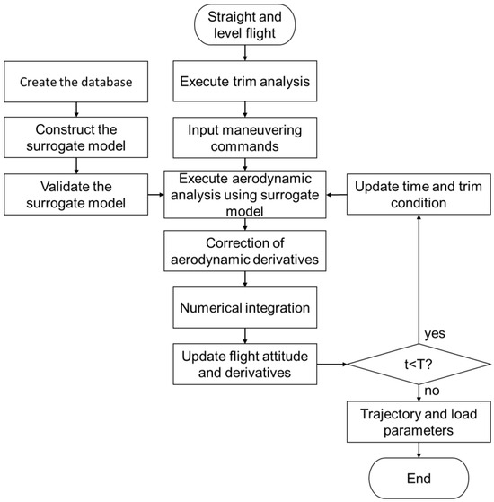 Analysis flowchart of maneuvering flight loads based on surrogate aerodynamic model.