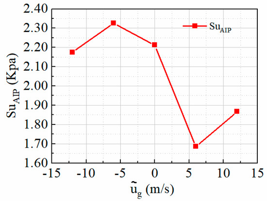 To better quantify the total pressure fluctuations on the AIP of the tiltrotor aircraft’s inlet caused by gusts, the unsteady intensity Su across the AIP is integrated and normalized to obtain the dimensionless parameter , which represents the flux of unsteady intensity. This parameter serves to measure the effects of head-on gusts on the pressure fluctuations of the inlet AIP: