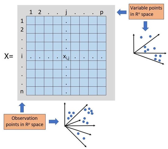 The acquisition of uncorrelated linear combinations of the original variables by PCA methodology is summarized in Figure 2. New virtual variables (called principal components) are created that cover the majority of the information provided by the original untreated variables. It should be remembered that the principal components are usually more difficult to interpret in comparison to physical variables, and also that they do not have any direct physical meaning, because they are artificially computed as linear combinations of the original variables.