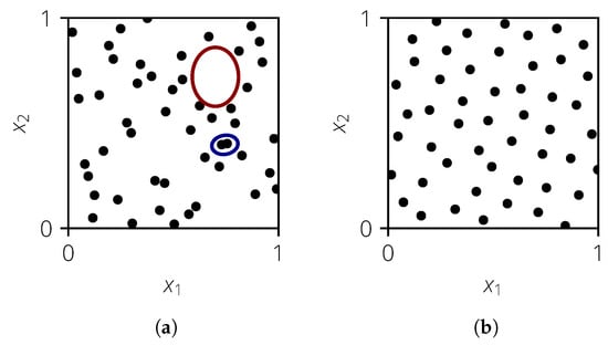 Example of a 2D sample with poor and good space filling, where . (a) Poor space filling. (b) Good space filling.