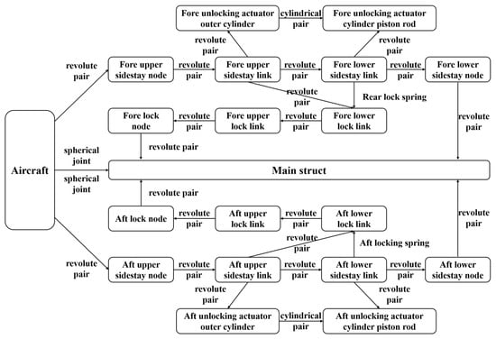 On the premise of satisfying the mass and moment of inertia of the landing gear, the components of the landing gear are appropriately simplified, the motion pair is established according to the component motion relationship shown in Figure 3, the installation deviation of the node is simulated by applying displacement drive at the node, and loads such as the locking spring force and retraction actuator damping force are added.