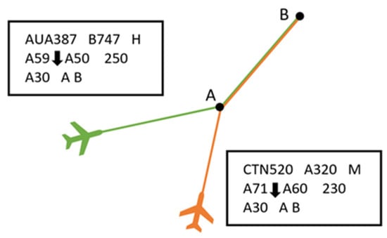 The second categorisation is comparing wake turbulence categories where an aircraft that should come to the conflict point (a point where aircraft would cross trajectories or closest to it) later than the first one is observed as the second aircraft. For the comparison, there is categorisation of (a) same, (b) lighter, or (c) heavier. If aircraft are in the category (a) same, then current speeds are compared. If speeds would differentiate more than 10 knots, then there would be another categorisation of (I) same/slower or (II) faster. The third categorisation is deciding upon conflict or potential conflict. In conflict, actual and cleared altitudes/flight levels are observed. One aircraft is passing through the altitude/flight level of another aircraft. Potential conflict differentiates from conflict as the actual and exit altitude/flight level are observed. Thus, potential conflict should carry less complexity for the task.