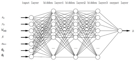 Based on the analysis in the previous section, different state parameters have varying effects on the bias term value. Their degrees of influence were examined, providing a reference for establishing samples in the next stage of the work. In the following section, we outline how a DNN was applied for training. Its overall architecture is analyzed and discussed, taking into account the boundedness of . Our approach further demonstrates the stability of the guidance law, even with the bias term constant obtained by training the neural network.
