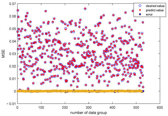 Set the loss function to 0.00001 or stop training when the number of iterations reaches 5000. As shown in Figure 1 and Table 1, there is a significant decrease in the loss function of the minimum data in the 52nd generation, which means that convergence has already begun since the 52nd generation. For those without data processing, convergence only begins in the 159th generation, indicating that the convergence speed is accelerated after minimum data processing. At the same time, training stopped in the 453rd generation after minimizing data processing, while training stopped in the 1172nd generation without minimizing data processing. The reason is that there is a large amount of data without data processing, resulting in overfitting. Whether it is the training set or the test set, the loss function values of the two are almost the same, both around 0.01, which proves that minimizing the amount of data processing also ensures training accuracy. Therefore, it can be further demonstrated that the data after minimization not only ensure training accuracy but also accelerate training speed, reduce training volume, and thus reduce training costs. The trained neural network was tested using 500 trajectories from the test set, and the predicted bias constant is shown in Figure 6.
