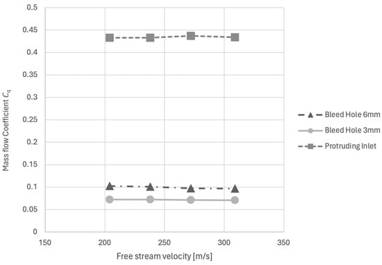 Mass flow coefficients at different velocities for the three inlet scenarios.