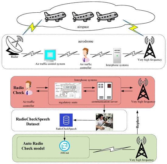 In the actual operation of airports, such interactions are plentiful, and effective radio communication can enhance the efficiency of airport operations [4]. Under poor communication conditions, both ground and air parties expend significant time and effort on radio adjustments, which, on average, reduces the efficiency of airport operations and poses safety risks [5]. We have analyzed dialogue data from several major airports in China. During the actual operation of airports, the time taken for one command exchange is about 10 s. Including the time taken by both parties to adjust the transmitter, one manual radio adjustment takes about 10 to 20 s, while the actual duration of a normal conversation does not exceed one minute. Moreover, currently, in the actual operation of airports, both parties must manually perform radio checks. Therefore, employing machines for radio adjustments can significantly increase the information throughput of ground-to-air communications, thereby improving the efficiency of controllers.