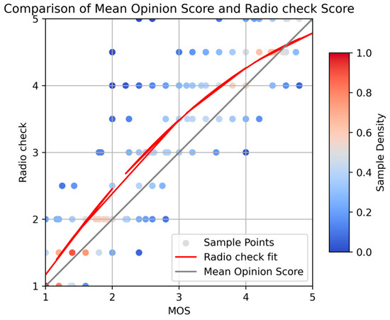 The evaluation of voice in radiotelephone communication heavily relies on the most immediate subjective perception of air traffic controllers, similar to the mean opinion score (MOS) assessment method. MOS is a subjective measurement method used to evaluate the quality of speech. It involves obtaining subjective ratings for voice samples from a group of individuals, including experts and non-experts. MOS scores are widely used in the telecommunications industry to assess call quality [6,7,8]. The MOS and the “Radio Check” command in radiotelephone communication both share similarities as subjective, non-intrusive methods for voice assessment. A comparison of their evaluation methods is presented in Table 1 below: