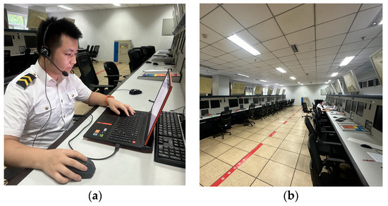 The RadioCheckSpeech dataset was developed using voice data evaluated by licensed air traffic controllers with at least two years of experience at airports. The voice data originates from several major airports in China, copied from the intercom systems at different control stages (approach, area control, tower), such as (Wuhan Tianhe Airport, Nanba Airport, etc.). The evaluation method resembles the radio check technique utilized during ground-to-air communication. To replicate the scenario in which actual air traffic controllers evaluate speech quality from the aerodrome control tower, we arranged for controllers to evaluate each command in a quiet control simulation environment while wearing specialized headphones. As shown in Figure 4a,b.