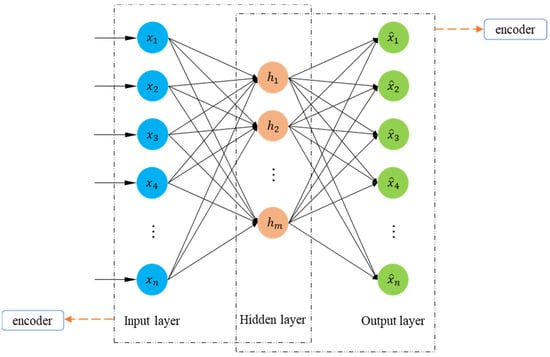 The encoder’s task is to learn the primary features of the input data and map the input signal to the hidden layer space. The decoder’s task is to restore the transformed data to its original space representation. Equation (5) is used for encoding, and Equation (6) is used for decoding.