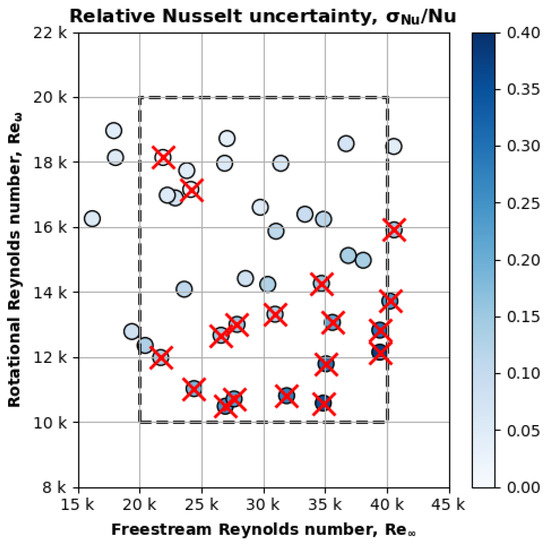 A filter removed 18 test cases with high relative Nusselt uncertainty.
