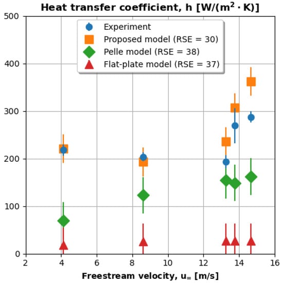 If we could dynamically predict h, we could evaluate whether a notional motor overheats under load in a specific environment. At steady-state, a motor dissipates all its internal losses to its surroundings (). We could solve Equation (5) for the motor’s steady-state temperature () given its geometry, losses, and freestream temperature. Unfortunately, predicting the heat transfer coefficient is difficult because h is an extrinsic property that depends on a body’s geometry and the external flow conditions [18].