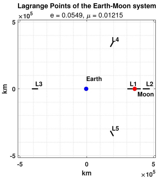 - JPL Solar System Dynamics. Three-Body Periodic Orbits. 2023. Available online: https://ssd.jpl.nasa.gov/tools/periodic_orbits.html (accessed on 13 January 2023).