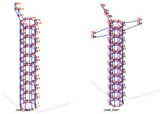 According to the sensor placement diagram, two simplified structural models were created in the modal analysis software. These are shown in Figure 8.