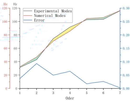 The first seven modes were sorted in ascending order of their corresponding natural frequencies (see Table 2).