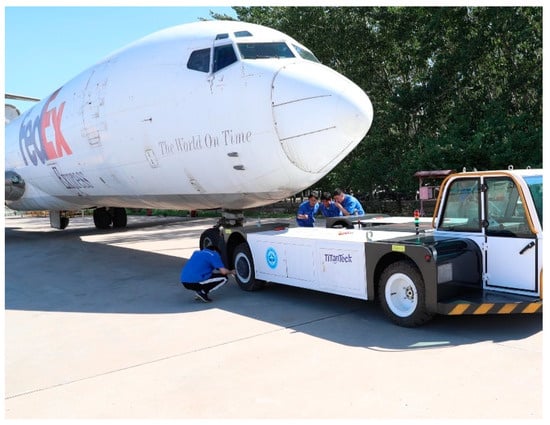 - Sun, Y.K.; Zhang, W.; Yang, X.W.; Liu, J.H.; Zhu, H.J.; Liu, Y.X.; Qin, J.H. Overview of Aircraft Towing and Taxiing Techniques. J. Traffic Transp. Eng. 2023, 23, 23–43. [Google Scholar]