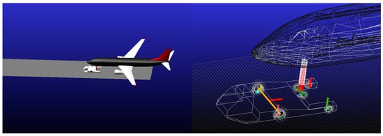 The geometric model of the aircraft towing system was established and imported into the ADAMS View 2020 software package to build the dynamic model of the towing system [30], as shown in Figure 15.
