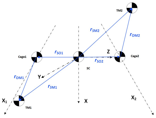 Let us start with the relative motion dynamics between a single test mass and the corresponding enclosure within a spacecraft based on the theory of the dynamics of spacecraft formation [48]. We obtain the following: