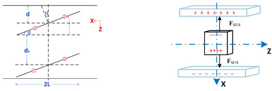 Figure 5 illustrates the schematic diagram of electrostatic actuators [51,52]. Due to the non-uniformity of the electrostatic field, all calculations pertaining to this component in this article are based on approximate considerations. The allocation of electrostatic actuators for test masses is similar to that of micro-thrust systems, and the allocation matrix can be seen in Equations (15) and (16), while Figure 6 showcases the arrangement of electrostatic actuators.