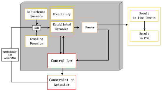 Due to the shared actuators between spacecrafts and test masses, the drag-free and attitude controllers for a spacecraft with internal test masses are designed as an integrated system, commonly referred to as drag-free and attitude control (DFAC) systems. The design details of DFAC systems have garnered significant attention from scholars [32,33,34,35,36,37,38,39,40]. Here are some typical designs: E. Canuto addressed the issue of system model accuracy by establishing noise estimators, constructed a new digital model, and proposed a feasible control system for the GOCE satellite based on EMC theory [32]. Chu Zhang tackled disturbance suppression in his controller design by combining ADRC (active disturbance rejection control) and DDC (disturbance decoupling control), and thus, effectively addressed the problem of a satellite equipped with a one-cubic-test-mass DFAC system [33]. A drag-free and attitude control system of the MICROSCOPE mission is introduced in [34], and the results are presented as in-orbit data.