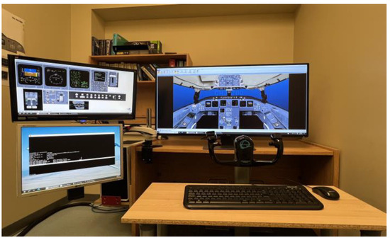The Virtual Research Flight Simulator (VRESIM), designed and manufactured by CAE Inc., was utilized for this research (Figure 5). The VRESIM represents the CRJ-700 aircraft. The three research flight missions (short, average, and long) were first simulated in the VRESIM. The aircraft and engine models embedded in the VRESIM interact with each other to determine the appropriate power setting (i.e., ) for specified flight conditions and environmental control system (ECS) bleed demands. The ECS oversees aircraft cabin ventilation and is supplied by air extracted from both engines. The engine model in the VRESIM encompasses an accurate representation of the full authority digital engine control (FADEC), which manages the engine power setting during in-service operation.