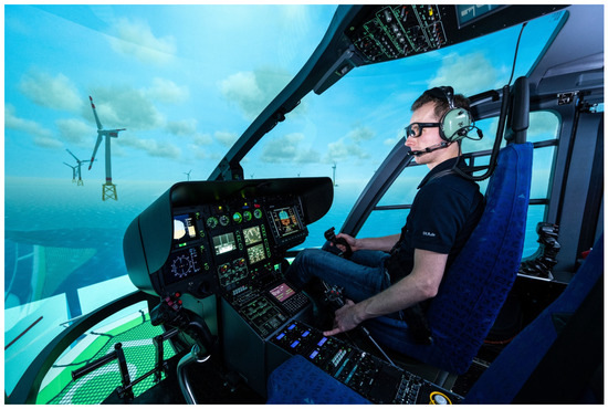 The German Aerospace Center (DLR) is dealing with the integration of eye tracking into the Air Vehicle Simulator (AVES) (see Figure 1) and the research helicopter Active Control Technology/Flying Helicopter Simulator (ACT/FHS) [15]. First, flight tests in a real-world environment with DLR’s research helicopter BO105 were already conducted and demonstrated the successful measurement of eye movements during a real helicopter flight [16]. The results indicate a strong pilot and maneuver depending on gaze movement behavior. However, with the combination of gaze distribution and flight performance, it was still possible to allocate a suitable gaze movement strategy for the investigated maneuver. The results also show that it is not sufficient to describe the pilot experience only by flight hours. The authors recommend extending the database with different standard maneuvers and a replication of real helicopter flights in a simulator environment to investigate a real-world applicability of earlier simulator studies [9,10,12].