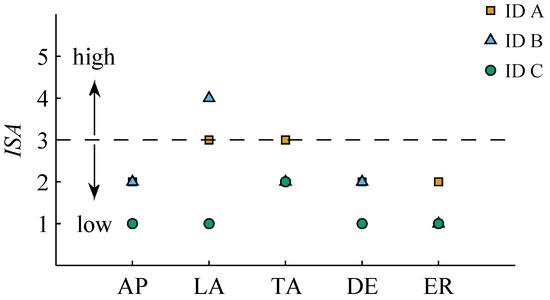 In addition to BWR (see Figure 6), Figure 17 presents the online questioning directly after each flight phase during motion simulation. ISA and BWR are in good agreement, which is also indicated by a coefficient of determination (R2) of 0.635.