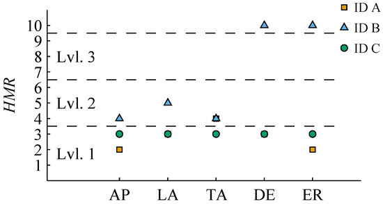 In a tailor-made questionnaire, the pilots rated the motion fidelity with the help of the HMR Scale (see Figure 18). The given answers of Pilots A and C were equal to or below 3, which indicates a motion fidelity close to real flight. Pilot B’s perception was an acceptable motion cueing without loss of performance or disorientation. All pilots commented that even if the motion fidelity was close or acceptable to reality, they did not expect noticeable motion cues during some flight phases because there were no accelerations during un-accelerated flight phases that the motion platform could reproduce. Therefore, Pilot B chose to give a rating of 10 during DE and ER because no motion cueing was perceived.