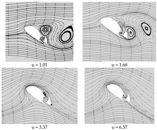 - Deng, J.; Sun, L.; Shao, X. Wake dynamics of low-Reynolds-number flow around a two-dimensional airfoil. Phys. Fluids 2019, 31, 024102. [Google Scholar] [CrossRef]