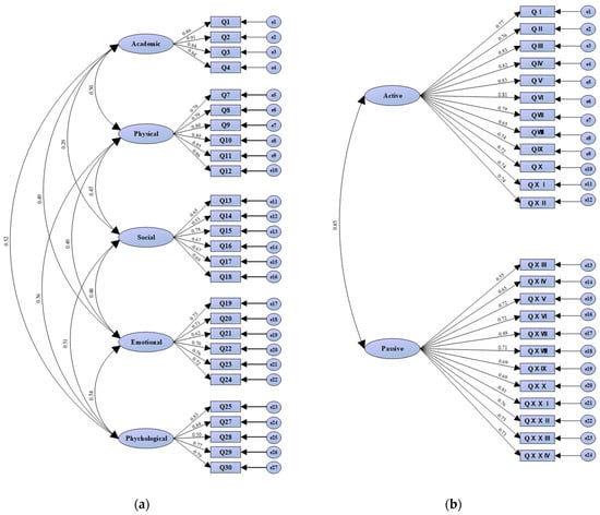 Confirmative factor analysis results: (a) self-awareness scale; (b) self-acceptance scale.