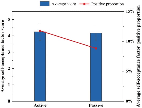 As depicted in Figure 5, no significant differences were observed between the average scores of active self-acceptance factor and passive self-acceptance factor, as both exceeded four points. This proved the relatively favorable levels of both active and passive aspects of self-acceptance among the surveyed cadets. Nevertheless, the active aspect displayed a higher proportion of 11.8% compared to the passive aspect.