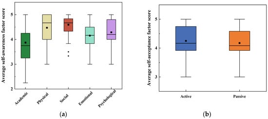 Figure 8. Box plots of factor scores: (a) self-awareness; (b) self-acceptance. - (2)