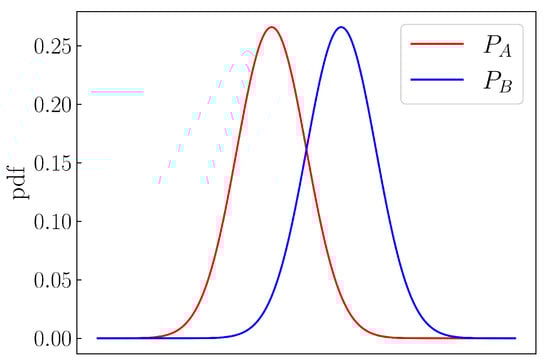 As described in Section 2.1, the JS-divergence has a closed form for some families of probability density distributions [] (e.g., normal distributions). However, the closed forms might be tedious to implement, therefore increasing the risk of coding errors. For this reason, the JS-divergence is numerically computed in this manuscript using the ready-to-use spatial.distance.jensenshannon method of Scipy python library []. The method accepts two probability vectors as input, representing the two probability distribution, for which JS-divergence is to be computed. In particular, if the two distributions are normal distribution ( and ), the probability vectors are defined by evaluating the probability density function of the two probability distributions at linearly spaced locations in a range defined as: