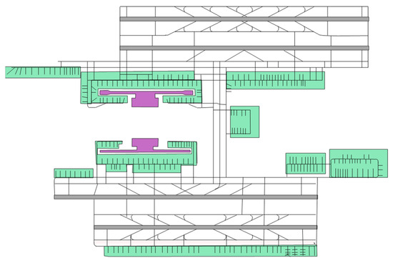 This study adapts actual operational scenario data from Shanghai Pudong Airport (ZSPD), one of China’s three major hub composite airports, for scenario classification matching and prediction. As shown in Figure 1, Pudong Airport currently has four runways: 16L/34R, 16R/34L, 17L/35R, and 17R/35L. Among them, runways 16R/34L and 17L/35R are typically used for departures. The data sources include surface activity data and airport meteorological information obtained from the Civil Aviation Administration of China and the Meteorological Aerodrome Report (METAR), respectively. This study selected all flight operation data (42,079 departures and 42,039 arrivals, totalling 84,118 records) and corresponding weather conditions at Shanghai Pudong Airport from 1 May to 30 June 2019.
