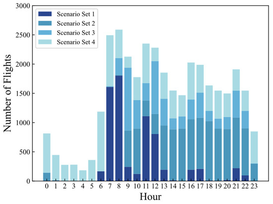 Therefore, this paper defines various scenario sets as follows: Scenario set 1 represents departure peak scenarios, Scenario set 2 represents arrival peak scenarios, Scenario set 3 represents arrival–departure peak scenarios, and Scenario set 4 represents other scenarios.