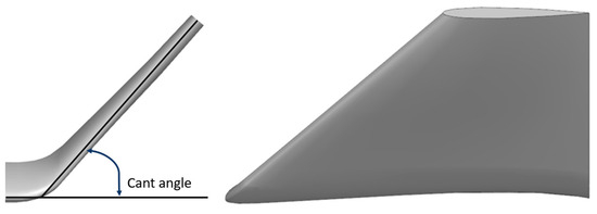 Winglets were the second type of Passive Flow Control Devices (after MVGs) investigated for the performance enhancement of the 4R-UAV wing. As mentioned, the target was to achieve improved performance at the earlier angles of attack (after MVGs contributed to stall delay and improvement at the later angles of attack). Winglets are extremely common structures in commercial aircraft wings, contributing to reducing induced drag. NASA pioneered the winglets in the mid-70s and, since then, several designs have been implemented. On the contrary, the idea of implementing winglets on small-scale UAVs is somewhat neglected due to low speeds and limited wingspans [25,26]. Due to the small-scale and mainly low-speed applications, the benefits of winglets on UAVs are limited to non-existent. However, from the research point of view, the design and performance analysis of the PCFDs, especially winglets, possess an enormous potential, which should be addressed in-depth in the scientific literature. Limited but outstanding studies were performed on UAV winglets. For example, Panagiotou [16] and Dagur [15] studied the impact of winglets on UAVs, including Medium-Altitude-Long-Range-Endurance (MALE) UAVs and were able to marginally reduce the drag or increase endurance. Unfortunately, these studies were performed on large-scale UAV wings only, but in small-scale UAVs with wingspans of 0.5–2 m, such marginal rise in performance may fade.