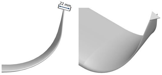 For the initial design stage of winglets, no standard method can be devised, since flow characteristics highly depend on the wing geometry and flight environment. The only useful way is to design several configurations of the winglets (based on the wing geometry and flight conditions) and analyze them computationally. For this, the authors developed six completely new winglet configurations for 4R-UAV wings. These configurations were designed based on wing geometry and flight conditions. Four main design parameters were considered for the winglet configurations, i.e., (i) winglet span (distance from winglet root to winglet outer edge), (ii) winglet height (distance between winglet root and tip), (iii) cant angle (angle between the horizontal plane and winglet), (iv) winglet root to tip chord ratio. Table 3 illustrates the geometric parameters of the six winglet configurations, while these configurations are shown in Figure 8, Figure 9, Figure 10, Figure 11, Figure 12 and Figure 13. The first three winglet configurations are the commonly used blended winglets. The 4th configuration is the blended winglet configuration with a larger arc radius. The 5th configuration is the wingtip fence winglet type. The last 6th configuration is the blended winglet with an additional flow divider with a 30° tip vertex and two 60° base vertices. All six winglet configurations were designed based on the cant angle range of 50–90 degrees, as prescribed by Panagiotou’s study [16].