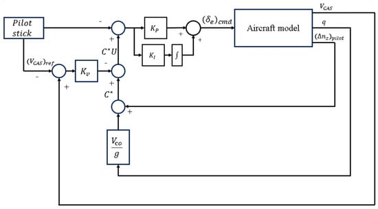 C* is defined by the linear combination of pitch rate and vertical load factor. The controller achieves stability enhancement by providing feedback to C*. The model of the C* controller is shown in Figure 5. The parameter C* form is as follows: