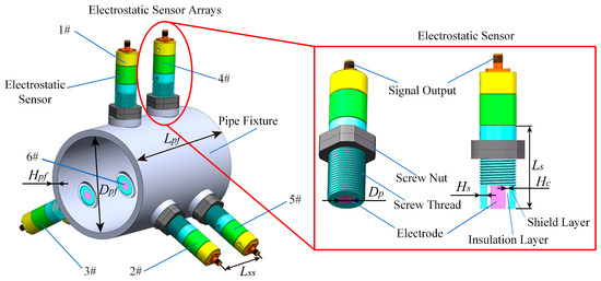 Physical structure of the electrostatic sensor, and the 1#, 2#, 3#, …, 6# represent sensor number.