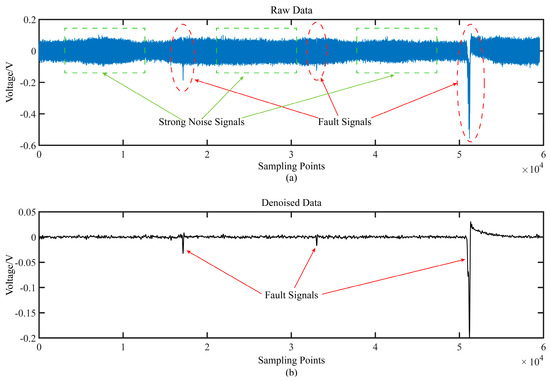 The raw data and the denoised data obtained through signal processing methodology: (a) The raw data; (b) The denoised data.