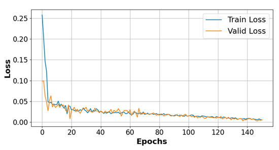 PA-TLA is a parallel architecture composed of two layers of convolutionally stacked TCNs (Temporal Convolutional Networks) and three layers of LSTM (Long Short-Term Memory). We set the time step to 12, use the Adam optimizer during training, employ MSE (mean squared error) as the loss function, maintain a batch size of 64, and run the model for 150 epochs. As depicted in Figure 13, the loss on the training and validation datasets evolves throughout the training epochs. Clearly, after all iterations, the model exhibits no signs of overfitting.