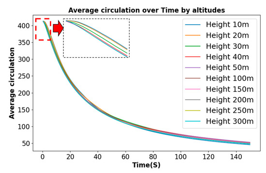 Evolution curve of aircraft wake circulation at different heights.