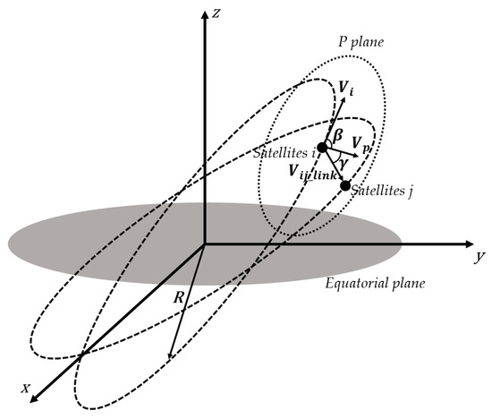 Additionally, the establishment of dynamic links also necessitates limiting the relative angular velocity to an acceptable maximum. Using the existing Formulas (4) and (5), the elevation angle and azimuth angle between any two satellites can be calculated. From the simulation in the previous section, it is observed that elevation angle variations are generally small and unlikely to exceed limits, especially when satellites are close. Hence, the primary focus is on the azimuth angle. Given its significant variation, based on the previous section’s findings, it is crucial to ensure that the azimuthal angular velocity does not exceed 0.5°/s.