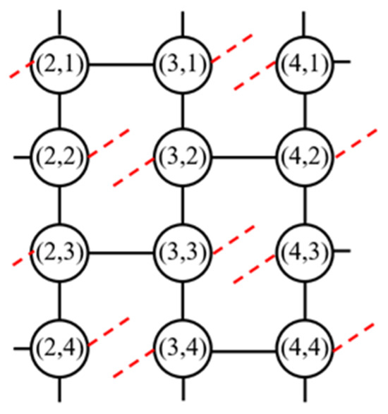 Specifically, to enhance the flexibility of dynamic links and enable interconnection among satellites crossing orbits, it is imperative first to avoid connecting to satellites on adjacent or identical orbits during the selection process for each satellite’s potential connections. Moreover, to achieve a lower latency, reliance solely on “mutual visibility” between satellites for determining connectivity is insufficient, especially when satellites are in close spatial proximity. Therefore, when defining dynamic link connections, it is mandated that the connection distance be less than the maximum distance found in the fixed links. Through an analysis of the fixed links, the longest distance between neighboring orbit satellites over a complete orbital period in the network was found to be 1620.06 km. Consequently, when constraining the relative distance of the dynamic links, satellites within a distance of less than 1620.06 km must be selected to meet the inter-satellite distance constraint.