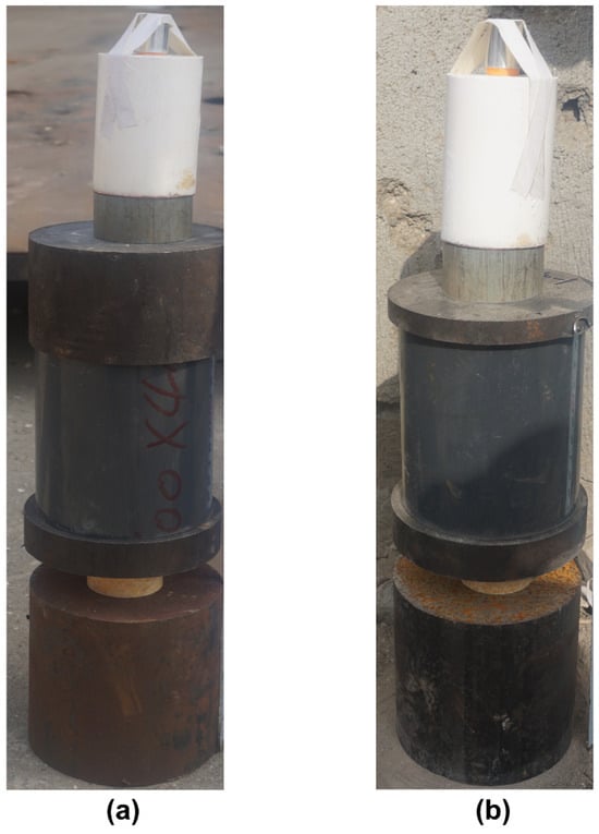 The experiments employed a specially designed setup comprising several crucial components. The first component was the shaped charge, a device previously discussed in our research for representing shaped charge threat. Given the impracticality of testing real containers transporting energetic materials, the effects of container walls were simulated using steel cylinders of varying thicknesses, with 10 mm representing a thin, specially designed container for energetic material transport, while 50 mm, 60 mm, and 65 mm cylinders represented additional protective measures for safer transport.