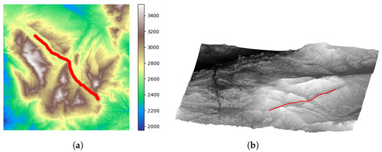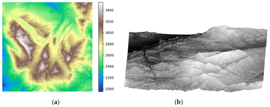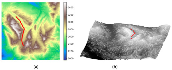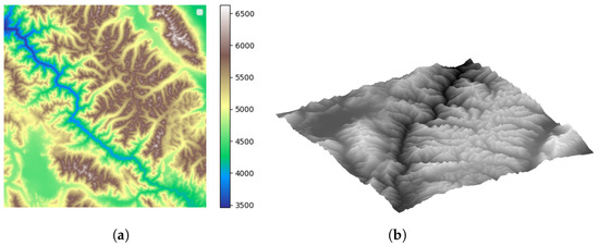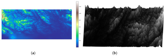 In our research, we selected three areas with prominent valley features as our workspace and downloaded the elevation data for these three areas from the U.S. Geological Survey website at www.usgs.gov (accessed on 4 February 2024). These three workspace are shown in Figure 1, Figure 2 and Figure 3.