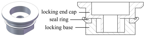 The lateral sliding seal structure comprises a sealing end cap and a sample tube. The sealing cap includes a locking end cap, a sealing ring, and a locking base, as illustrated in Figure 8. The seal is formed through the mutual extrusion of the outer side of the sealing ring (resembling a knife edge) and the inner wall of the sealing cylinder, resulting in plastic deformation. During the sealing process, a vertical downward force is applied to the upper face of the locking end cap, pressing the sealing ring into the sealing tube in excess, thereby forming a seal.