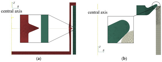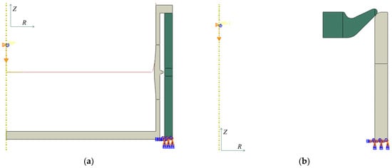 Axisymmetric FEA model: (a) lateral non-sliding seal FEA model, (b) lateral sliding seal FEA model.