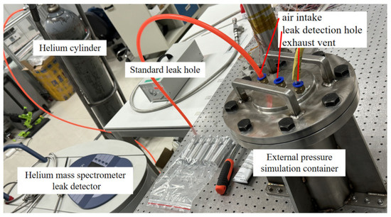 In order to evaluate the sealing performance of the sealing structure, an external-pressure analog leakage detection device is established based on the actual sealing environment, as illustrated in Figure 21. The sample tube was secured within the chamber of the external-pressure analog container, and the chamber was pressurized with gas to create a differential pressure between the interior and exterior of the sealed container. This adjustable differential pressure environment allows for testing the sealing effectiveness of the container under varying pressure conditions.