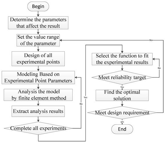 Firstly, target parameters for optimizing the core ultra-stable structural framework are selected based on the index requirements, and their value ranges are determined while also clarifying the interdependent conditions among structural parameters [13]. The methods for selecting experimental points include full factorial design, orthogonal array, central composite design, Box–Behnken design, Latin hypercube design, and optimal Latin hypercube design [14]. Among these, the Box–Behnken design consists of multiple orthogonal cubes and includes a central point. Because it avoids extreme points, it can be applied to the optimization of mechanical dimensions, preventing cases where a dimension is too small to conduct the experiment or where the results are unstable. The Box–Behnken design allows for accurate estimation of second-order effects while maintaining a sufficient number of experimental points. Therefore, we chose the Box–Behnken design method to select the experimental points required for response surface methodology (RSM) [15].